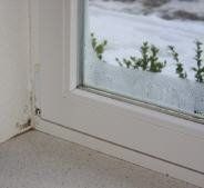 Kondensat und Schimmelpilz in den Fensterfälzen.